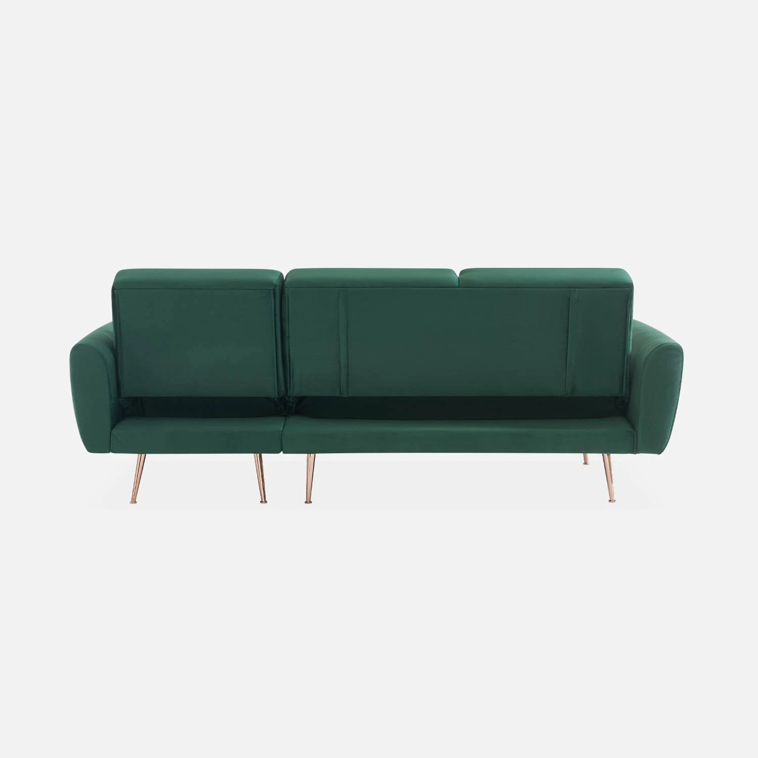 De belles formes pour ce canapé OSKAR, au velours doux et au piètement métallique oblique minimaliste. Vous serez également séduit par son système instantané d’inclinaison de dossier en 3 positions; canapé, dossier incliné ou encore position lit, à plat. L’assise et le dossier sont confectionnés avec une mousse dense et un système de soutien par ressorts et sangles élastiques, de quoi rendre l’ensemble très confortable tout en garantissant une assise ferme.