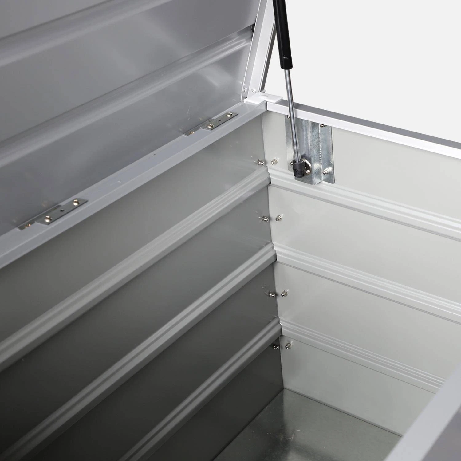 285L de rangement pour ranger ce qui ne se range pas ailleurs ! Coussins, jeux, plaids, outils il y a de la place. Robuste et légère, métal parvient à résister à la pluie et aux rayon du soleil en plus d’habiller votre extérieur. C’est le coffre de rangement idéal pour mettre de l’ordre dans votre jardin.