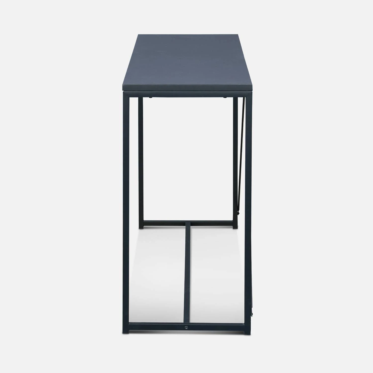 Cette console aux lignes épurées et minimalistes ravira les adeptes de la décoration industrielle. C’est un meuble à la fois simple et design qui apportera élégance et modernité dans votre intérieur. La structure en métal et la barre de renfort en font un meuble de rangement durable et solide.