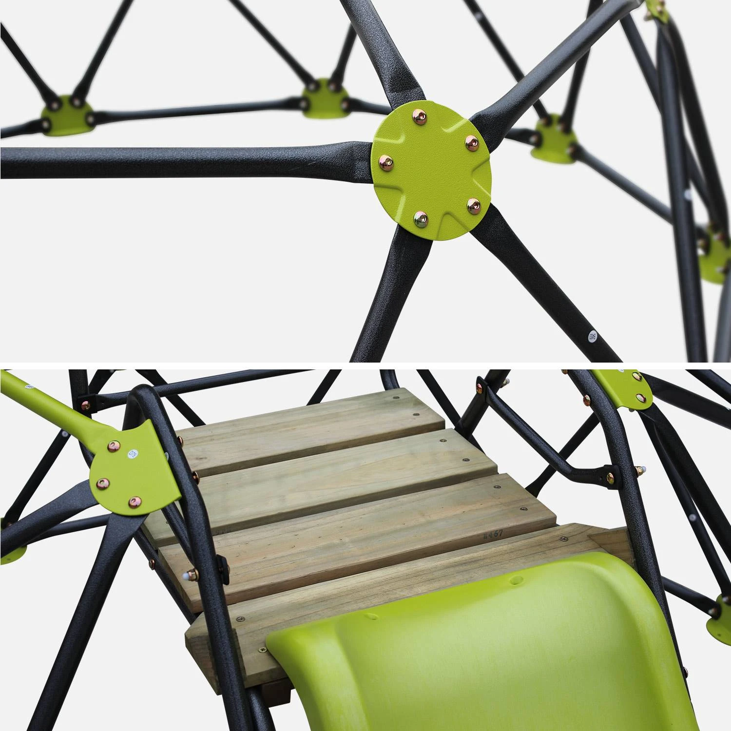 Pour vous garantir une bonne résistance aux conditions extérieures, la structure de l’aire de jeux Albe est recouverte d’une peinture epoxy qui limite l’apparition de corrosion. Par ailleurs, la quincaillerie est en acier galvanisé, les éléments en bois sont en pin et le toboggan est en plastique moulé par injection, très solide.
