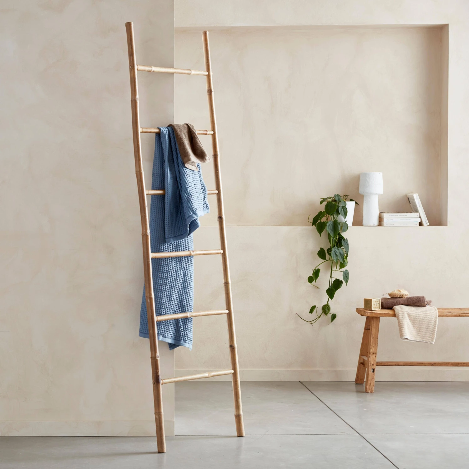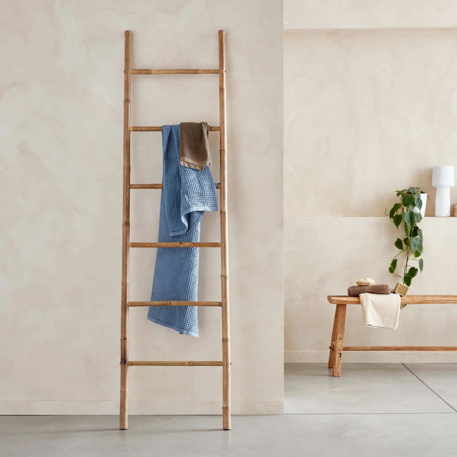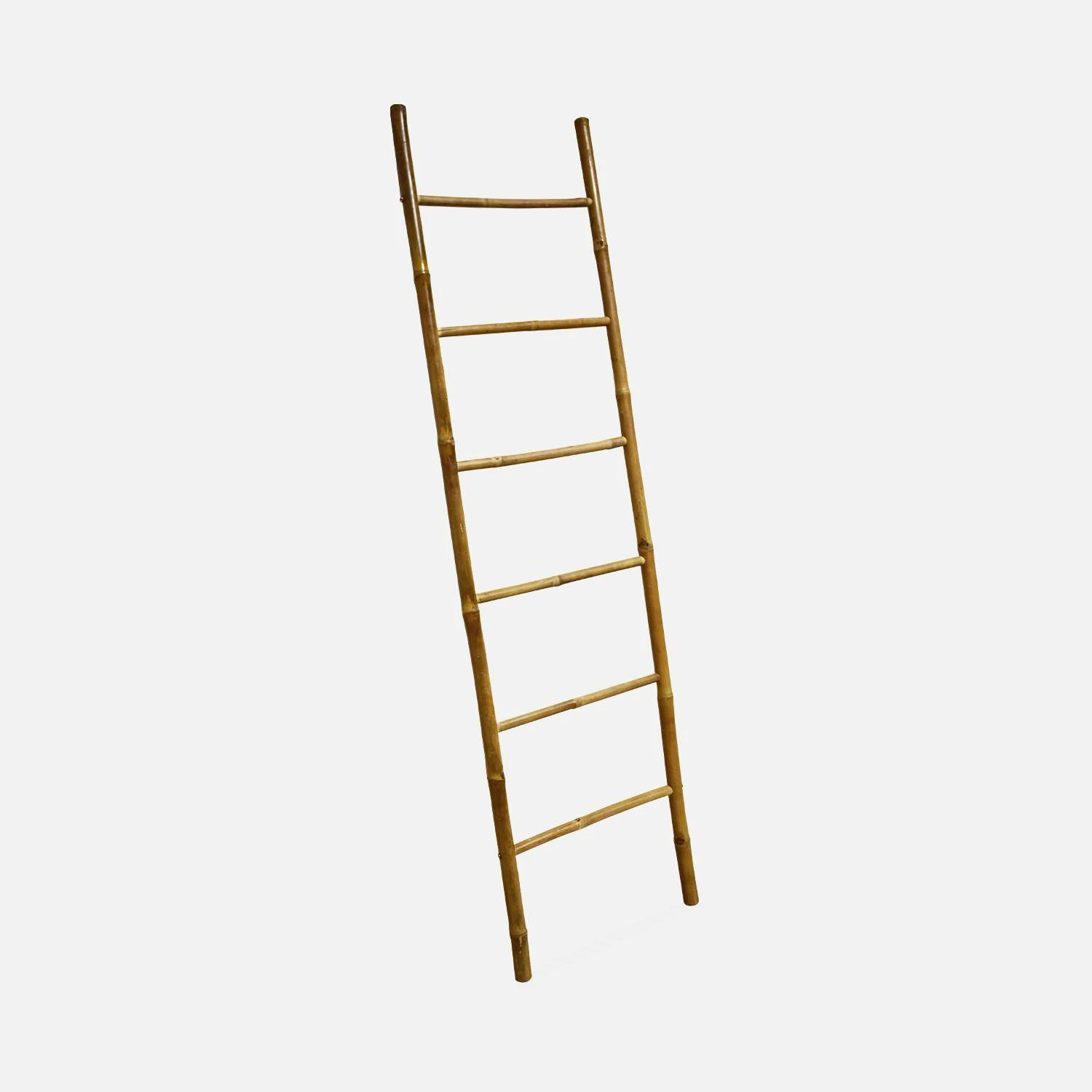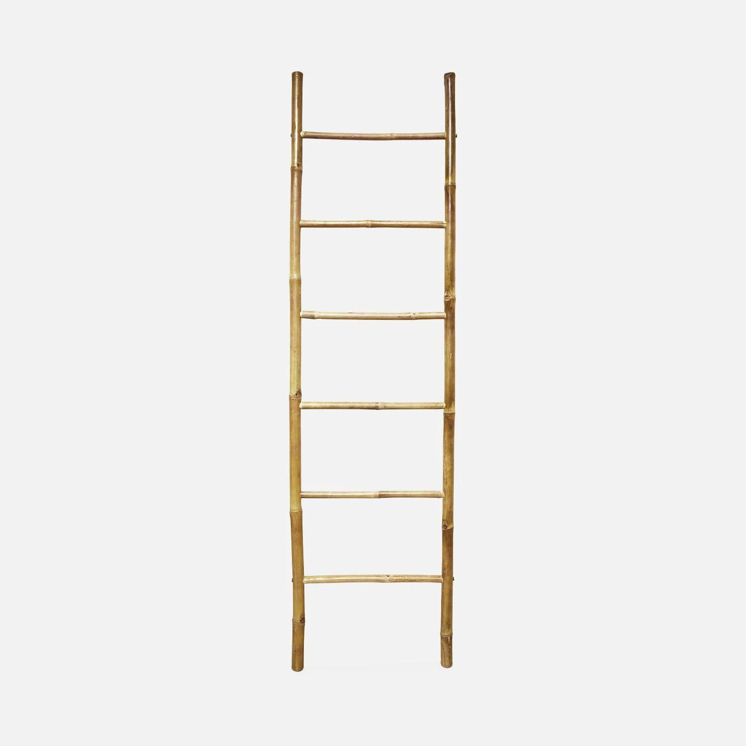Offrez une ambiance tropicale à votre intérieur grâce à cette échelle. Sa matière en bambou et sa couleur naturelle apporteront à votre chambre, salle de bain ou salon un aspect plus apaisant. Dotée de 6 montants, cette échelle est également très pratique et vous permettra d’ajouter un réel plus à votre décor. Pour ceux qui souhaitent rester dans une ambiance exotique et relaxante, optez pour des plantes suspendues afin de faire ressortir l’authenticité du bois. Si vous préférez qu’elle vous serve de rangements, étendez vos serviettes, couvertures et vêtements sur ses montants. Polyvalente, cette échelle ne peut que vous faire craquer !