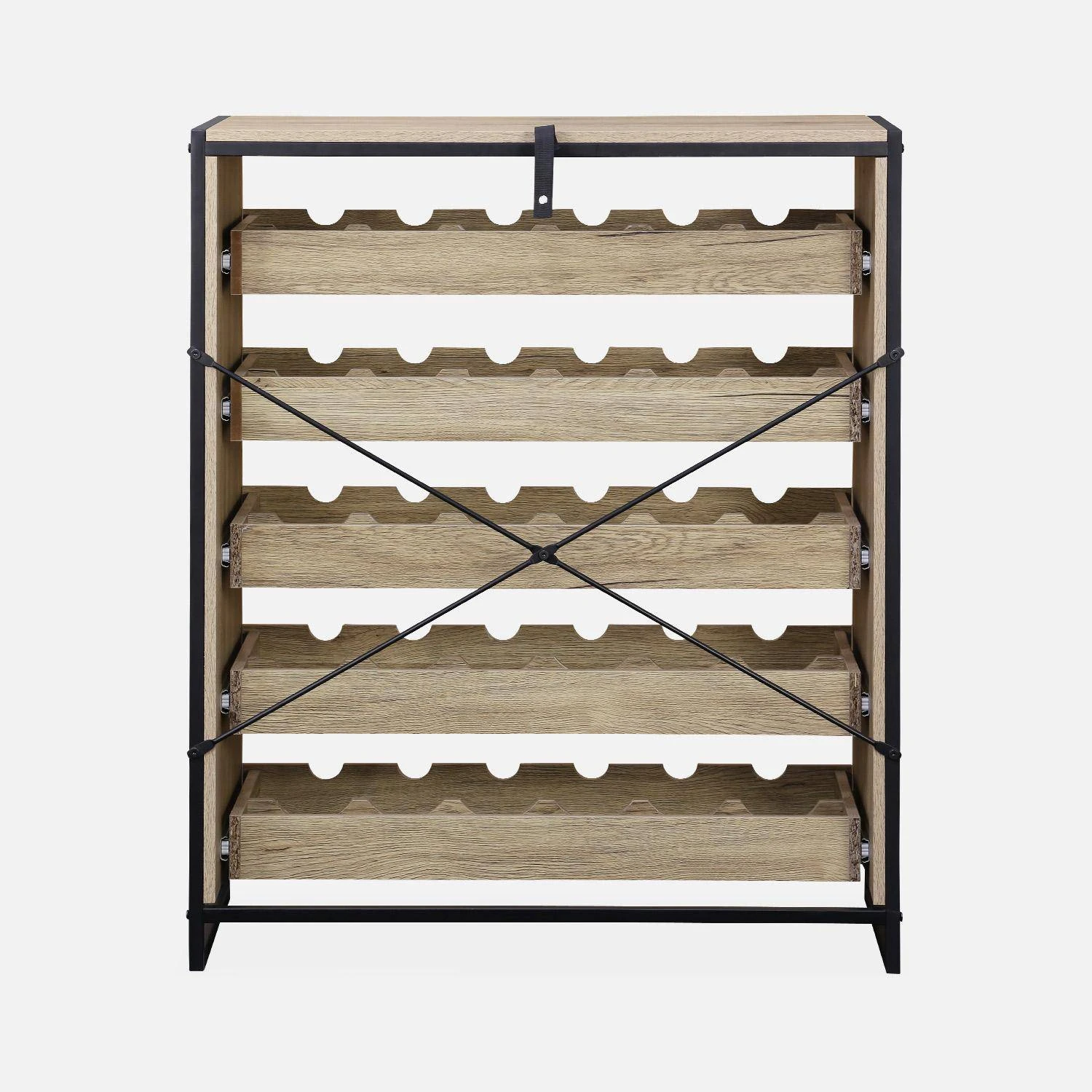 Ce meuble a été imaginé dans le but de ranger vos bouteilles. Sa structure industrielle et ses décors authentiques couleur bois offriront de la modernité à votre cuisine, cellier ou cave. Si vous êtes amateur de bon vin et que vous aimez les savoir bien ranger, ce meuble très fonctionnel est la pièce qu’il vous faut absolument !