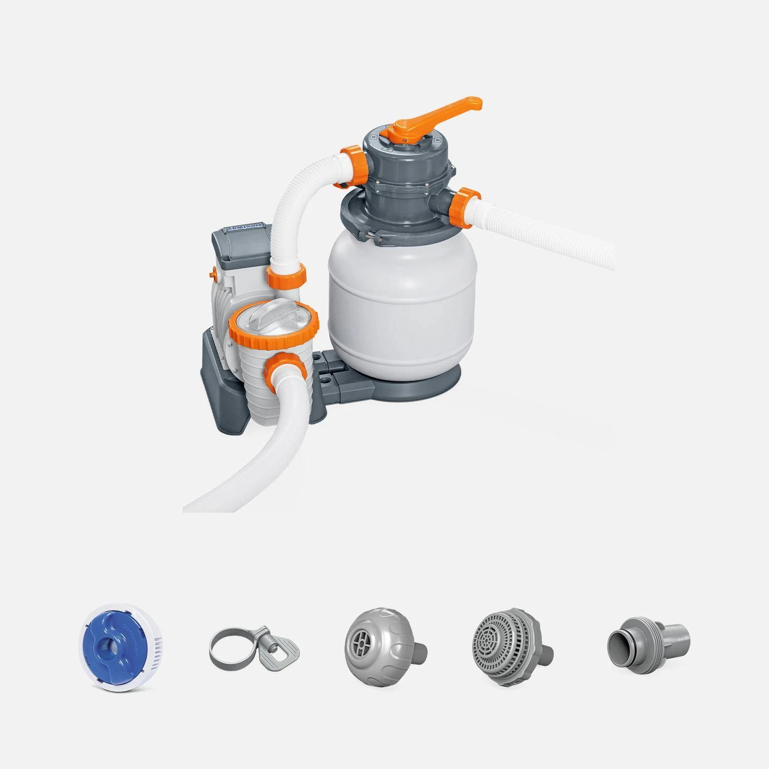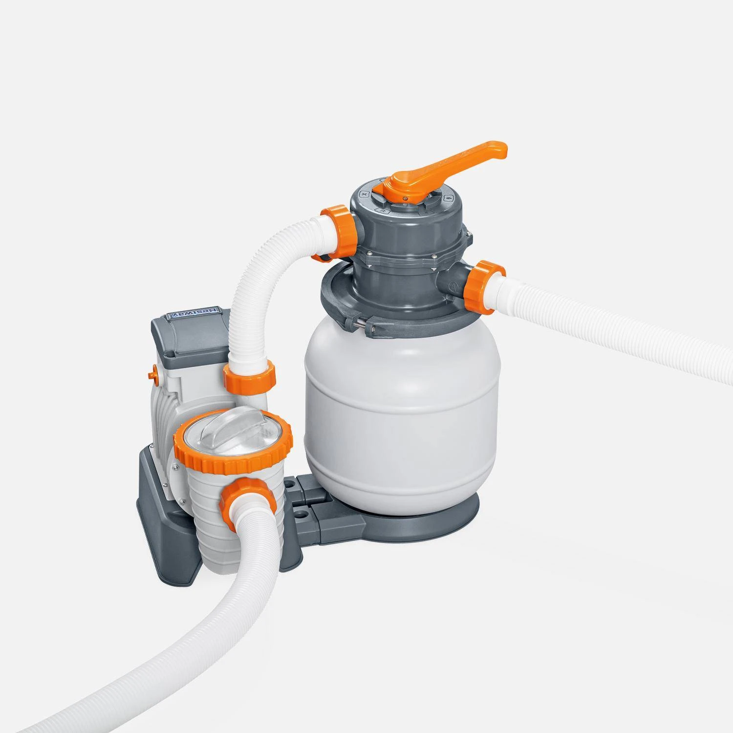 Il sera désormais possible de garder votre piscine propre plus longtemps et de manière plus écologique grâce à ce filtre à sable. Les cartouches filtrantes classiques peuvent être remplacées par du sable de silice, qui peut durer jusqu’à 3 ans. Le diffuseur Chemconnect fourni permettra de doser le niveau de chlore pour votre piscine. Ce filtre est compatible avec les piscines hors sol d’une capacité de 1 100L à 45 000L. Un adaptateur est fourni pour les piscines aux valves de 3.8cm. Il sera aisé de contrôler la filtration de votre piscine grâce à la minuterie intégrée.
