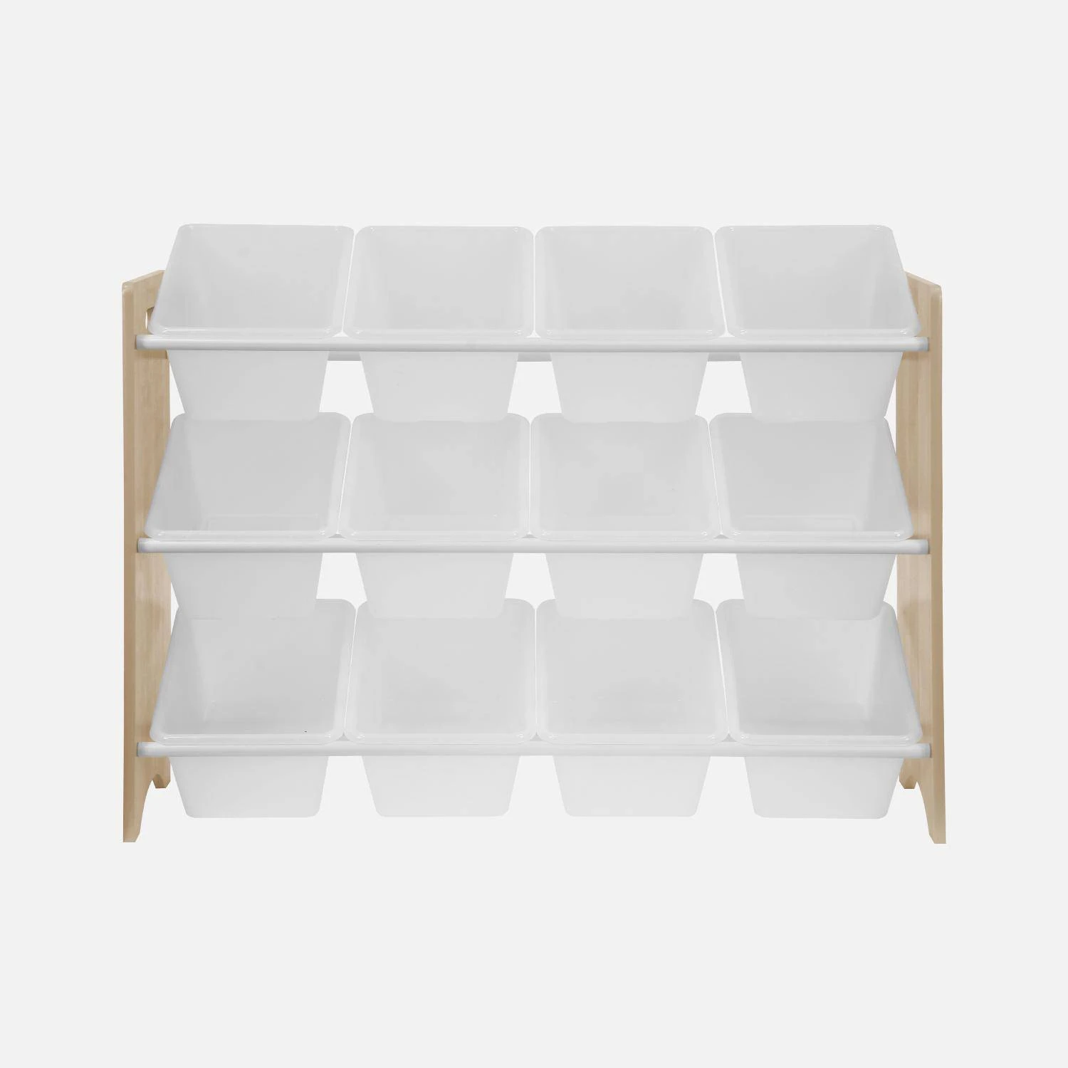 La chambre de votre enfant déborde de jouets et vous ne savez pas où les ranger ? Ce meuble de rangement Tobias est la solution idéale pour ranger les affaires de votre enfant. Les 12 casiers en plastique livrés avec le meuble peuvent accueillir livres, jouets, chaussures. Ils sont légers et peuvent être facilement manipulés par les enfants. Avec sa couleur douce, il a un design épuré qui participera à la décoration de la chambre de votre bambin. Enfin, il est doté de 2 poignées latérales pour pouvoir le bouger en toute facilité.