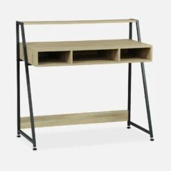 Bureau Métal Et Effet Bois 1 étagère Et 3 Casiers De Rangement