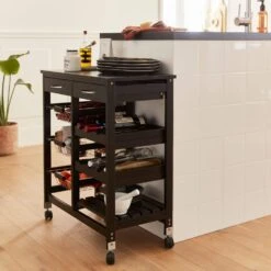 Desserte Cuisine Effet Bois à Roulettes 65 X 35 Cm Couleur : Noir