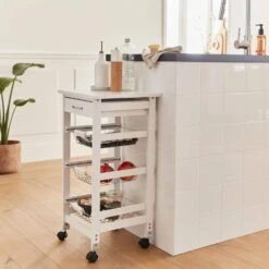 Desserte Cuisine Effet Bois à Roulettes 37 X 37 Cm