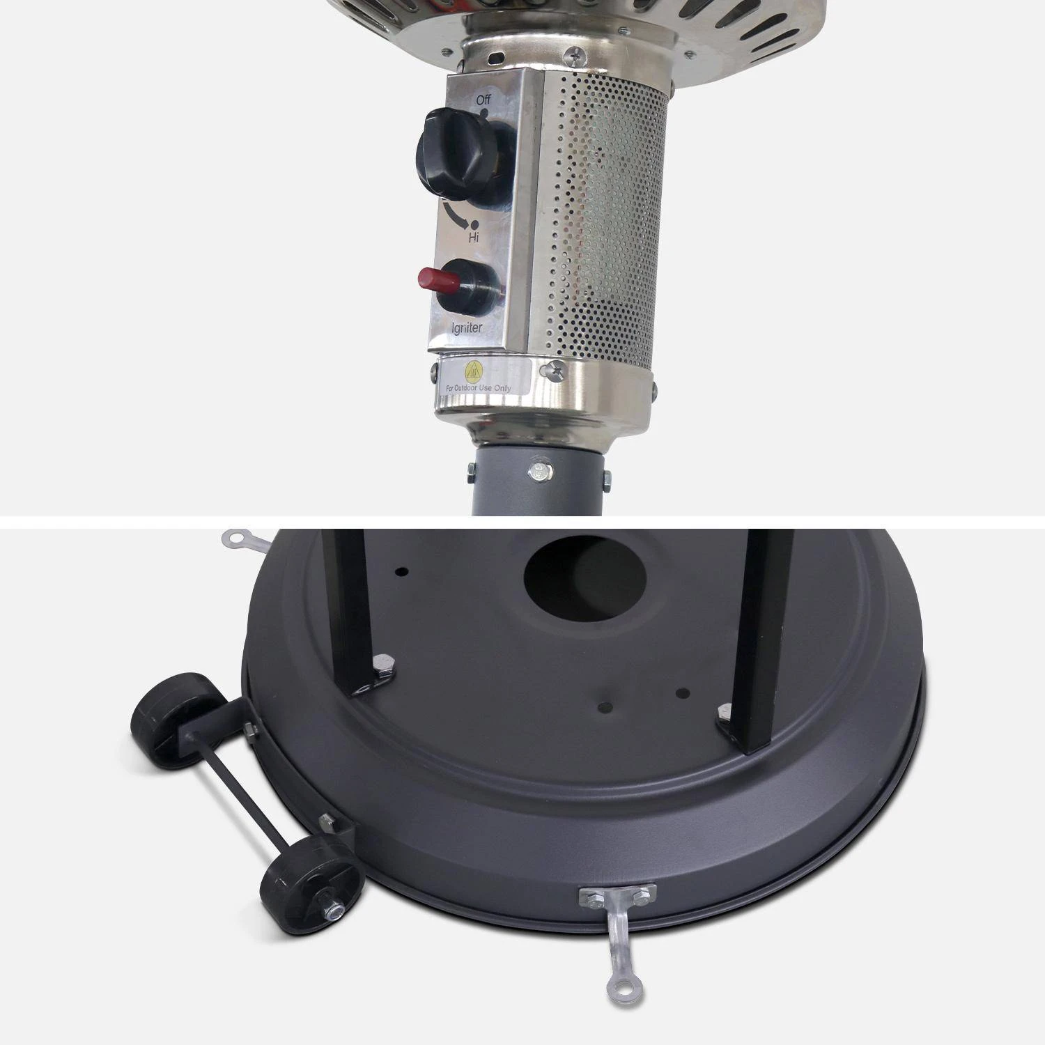 Le parasol chauffant Norway est un produit fiable et de qualité. Initialement prévu pour une utilisation professionnelle, il est doté d’un système de sécurité (basculement + thermocouple) qui évite les risques d’accident. Son réflecteur est en aluminium, cela accroit la longévité du corps de chauffe. Il suffit de soulever le logement qui coulisse le long du mat pour placer la bouteille de gaz. Le parasol chauffant est, par ailleurs, mobile car il est équipé de roulettes et de stabilisateurs.