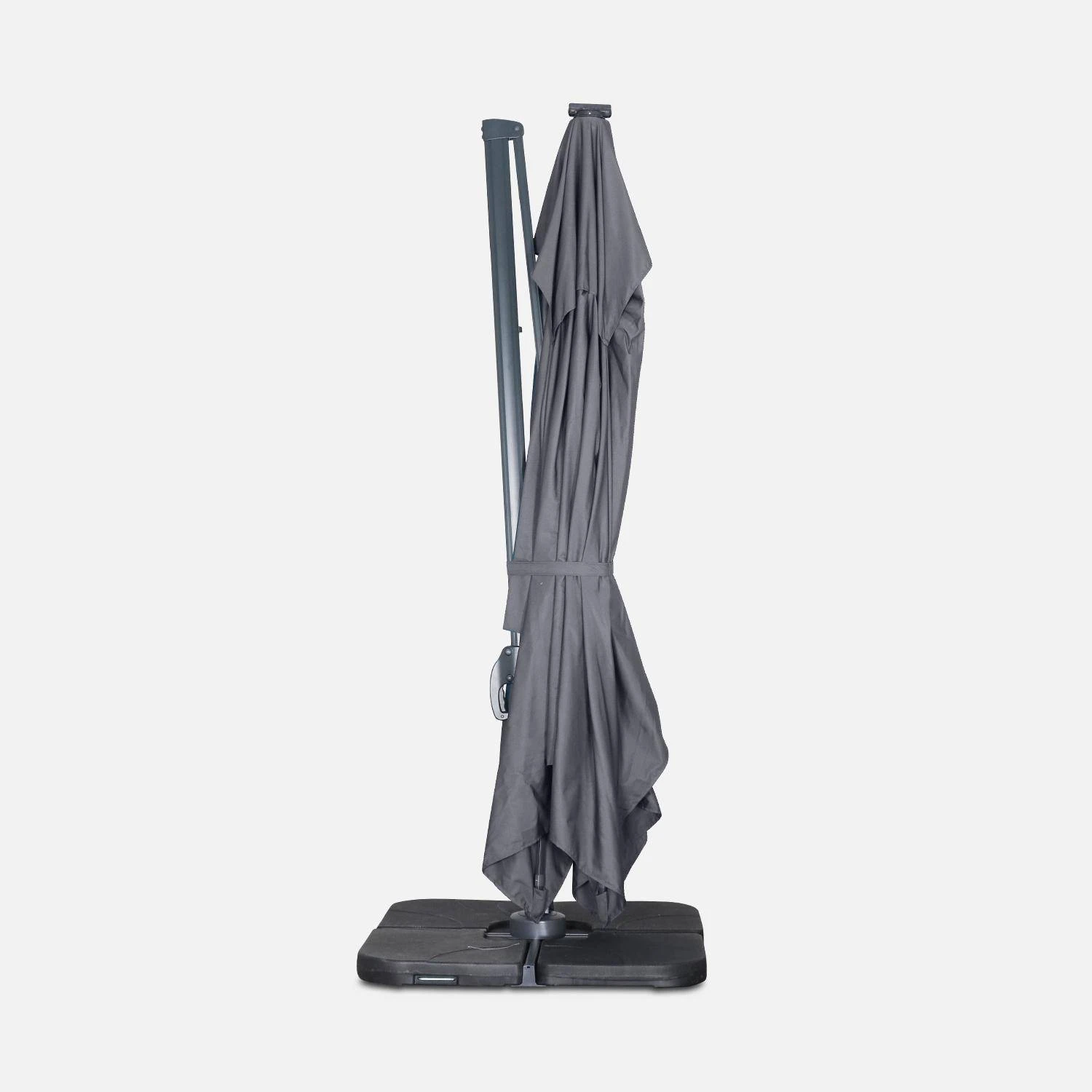 Attention, les dalles nécessaires pour lester le parasol ne sont pas fournies, vous retrouverez une sélection de dalles dans notre boutique (remplissables ou en résine).