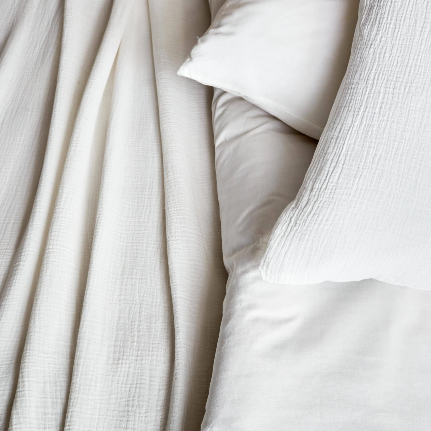 Si au départ ce tissu était utilisé pour les produits bébé, il s’est ensuite imposé dans l’univers du linge de maison. La gaze de coton est fabriquée avec une méthode de tissage bien spécifique. Ce tissage se constitue de fils de chaine entrecroisés autour de 2 fils de trame. Il devient ainsi plus solide et résistant tout en conservant son toucher aérien et vaporeux.