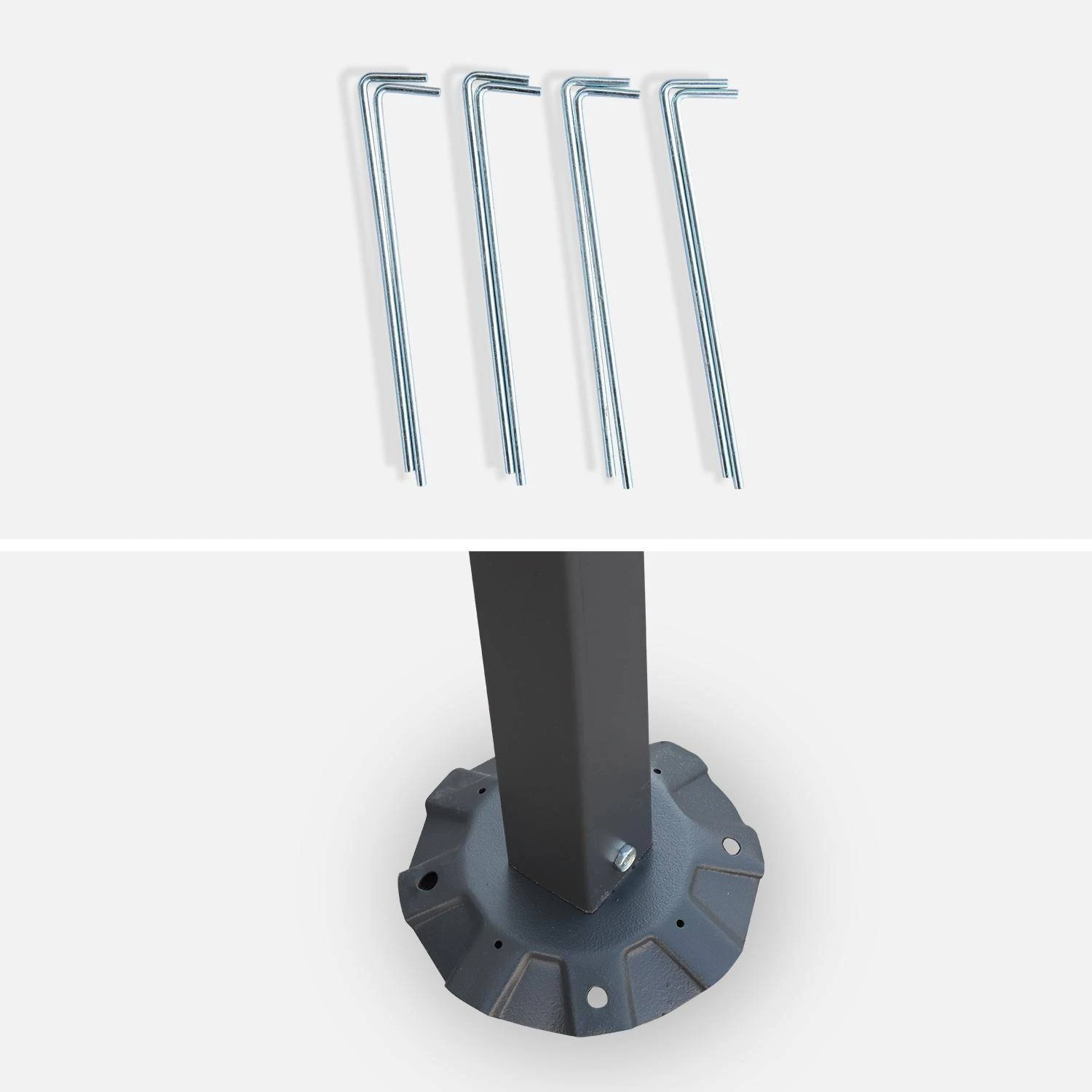 La toile de toit, dont la fonction principale est de protéger du soleil, est en polyester et d’une densité de 180g/m2. La structure est solide car elle est en acier renforcé. Pour lui donner un joli coloris uniforme, elle est recouverte d’une peinture époxy.