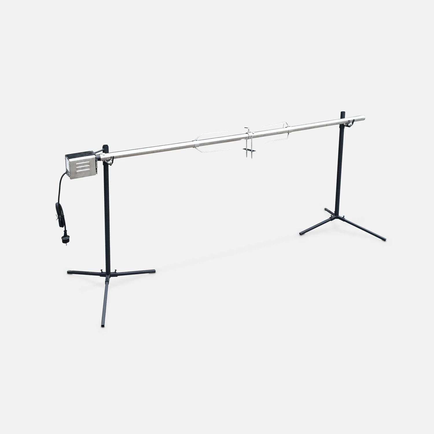 Dotée d’un système d’inclinaison à 360 degrés, cette rôtissoire pour cochon de lait vous permettra de faire cuire vos aliments efficacement et sur toutes ses surfaces. Avec sa grande surface de cuisson, vous aurez un large espace pour y placer vos viandes à rôtir. Enfin sa structure en acier lui confère une solidité à toute épreuve et son moteur électrique possède un interrupteur marche/arrêt pour plus de simplicité !