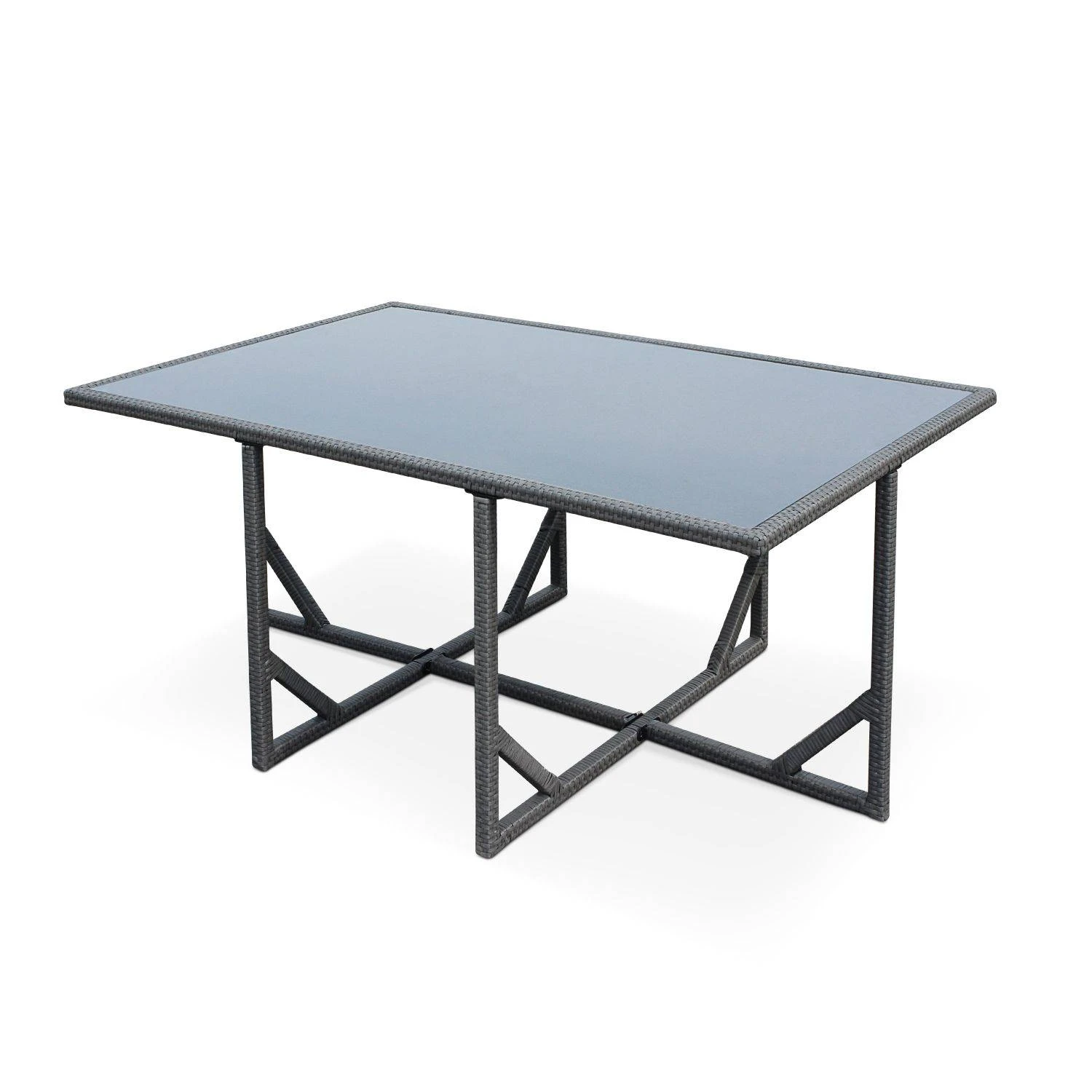 Conçu en résine tressée, le Vasto est très solide. En effet, ce matériau chic et moderne est pensé pour résister aux UV et aux intempéries (pluie, neige, eaux salées). Pour vous garantir longévité, la structure métallique de cet ensemble de jardin est en acier galvanisé recouvert d’une peinture thermolaquée. Ce traitement offre une plus grande protection contre l’oxydation de l’acier. Les coussins sont déhoussables et résistants à l’eau. De plus, ils sont munis d’un passe-poil ! Le plateau de la table est en verre trempé noir, 5mm d’épaisseur. C’est un verre 5 fois plus solide que le verre traditionnel.