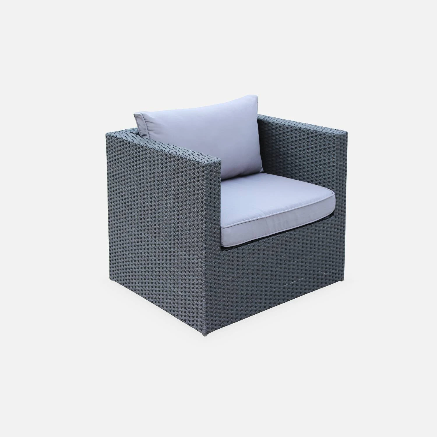 Fabriqué en résine tressée, le salon de jardin Benito a un style moderne qui s’adapte très bien à une terrasse lounge ou contemporaine. Ce salon de jardin s’installe aussi bien en intérieur qu’en extérieur grâce à l’allure chic que lui confère la résine tressée. C’est, en effet, un matériau qui ressemble au rotin naturel.