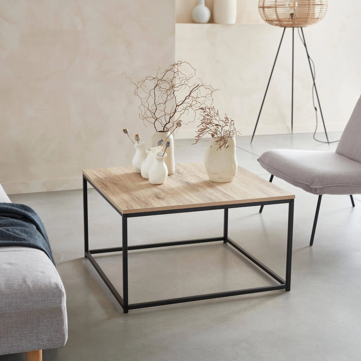 Grâce à sa structure métallique et à son plateau de couleur bois, cette table base s’inscrit dans un style résolument industriel. L’association du métal et du bois donnera à votre table basse ainsi qu’à votre pièce une touche tendance et moderne. Sa forme carrée est parfaite pour habiller votre tapis et pour faire des apéros party en famille ou entre amis. Pour ceux qui préfèrent les soirées plus calmes, elle saura aussi vous accompagner lors de vos séances plateaux télé. De petite taille, elle se placera facilement dans votre pièce et n’encombrera pas les salons de plus petites superficies. Son design simple et industriel vous permettra de lui trouver aisément une place aux côtés de vos autres meubles.