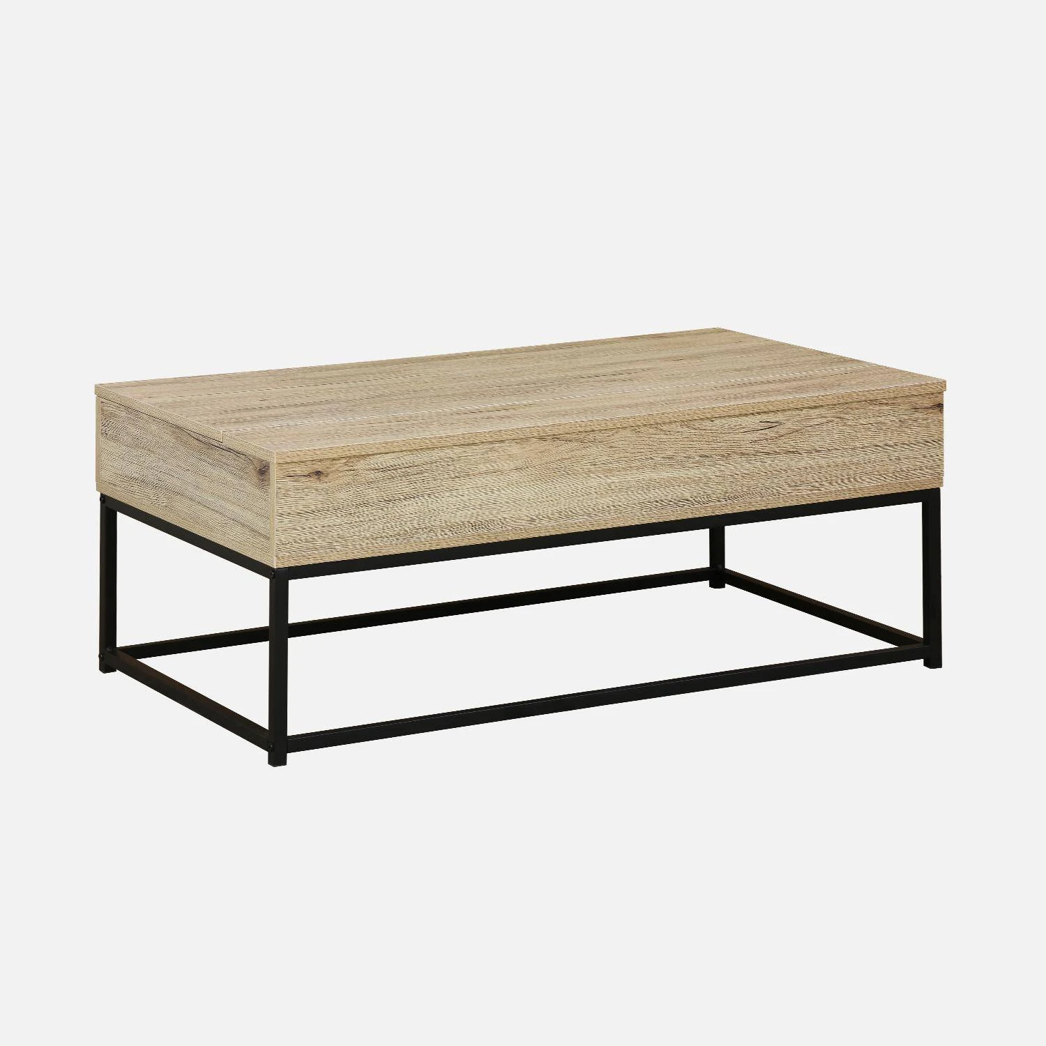 Cette table basse au design industriel permettra d’apporter de la modernitĂ© Ă votre pièce et rendra votre dĂ©coration tendance. Sa structure en mĂ©tal noir mat et ses dĂ©cors bois combinent deux styles diffĂ©rents : contemporain et industriel. Cette table basse Ă la particularitĂ© d’ĂŞtre particulièrement fonctionnelle grâce Ă son plateau relevable. Vous n’aurez plus besoin de vous embĂŞter Ă avancer votre table et Ă crĂ©er de nouveaux trous dans votre tapis Ă cause du poids de la table. En effet son plateau vous permettra de manger depuis votre canapĂ© ou bien de poser votre ordinateur. Ce meuble possède un système de coffre qui vous offre un espace de rangement couvert et discret vous permettant de ranger aisĂ©ment vos tĂ©lĂ©commandes, magazines, livres et objets Ă©lectroniques. L’espace de rangement ouvert en dessous de la table, vous offre quant Ă lui, la possibilitĂ© de ranger vos plaids, cousins… Si vous ĂŞtes Ă la recherche d’une table basse pratique fonctionnelle et moderne, ne cherchez plus, c’est celle qu’il vous faut !