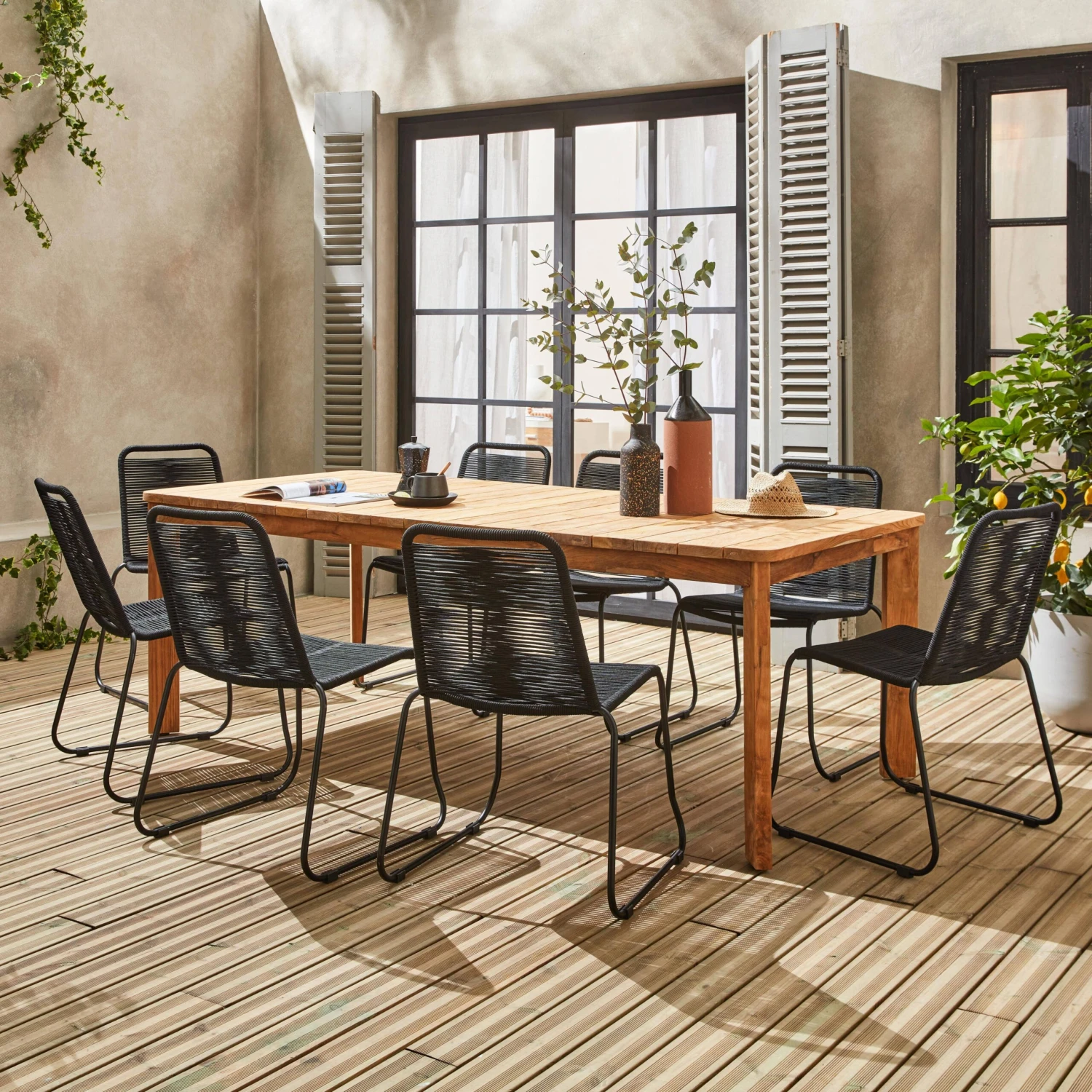 Cette jolie et grande table pourra aussi bien se placer sur votre terrasse de jardin l’été que dans votre salle à manger l’hiver. Elle est ainsi parfaite pour se retrouver en famille autour d’un bon repas. Sa structure en teck recyclé est résistante à l’eau, vous n’aurez donc aucun mal à l’entretenir en intérieur comme en extérieur. Résistant aux intempéries, ce bois est imperméable et n’a pas besoin d’être mis à l’abri. Extrêmement résistant, vous pouvez laisser votre table de jardin à l’extérieur toute l’année sans protection particulière et sans que sa qualité se détériore. Enfin cette table nécessite que peu d’entretien.