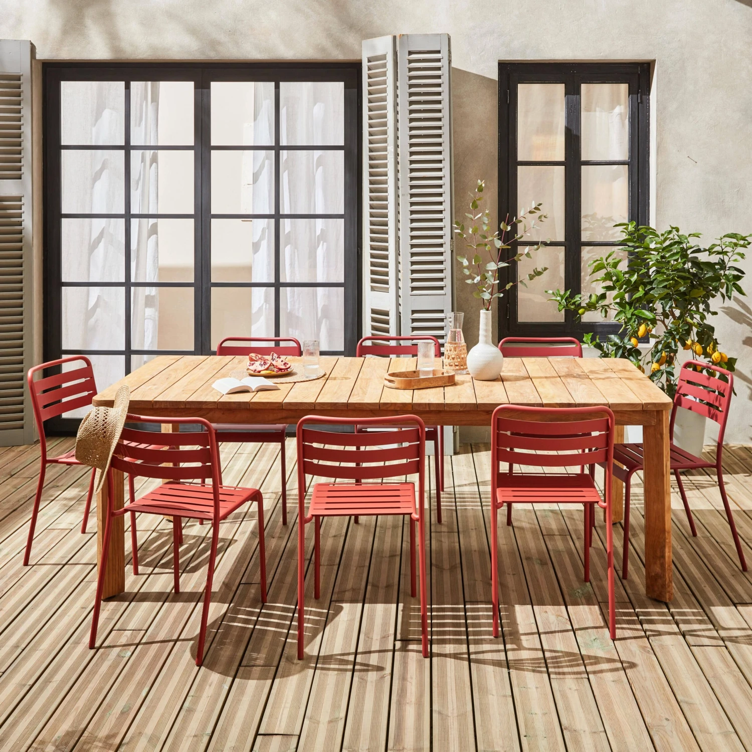Cette grande table de 8 places est à la fois conviviale, écologique et pleine de charme. Sa structure permet de réduire l’impact environnemental car elle a été fabriquée en teck ancien recyclé. Dotée de raccords visibles au niveau de ses lattes qui n’althérent pas la qualité de la table, cette table possède cachet et authenticité ! De quoi vous replonger dans vos souvenirs d’enfance lorsque vous alliez manger chez vos grands-parents. Contemporaine et intemporelle grâce à sa couleur naturelle, cette table est aussi très pratique lorsque vous souhaitez organiser de grands repas de famille car elle peut accueillir jusqu’à 8 personnes ! Créez-vous de jolis souvenirs en famille ou entre amis grâce au charme ancien de cette table en teck recyclé !