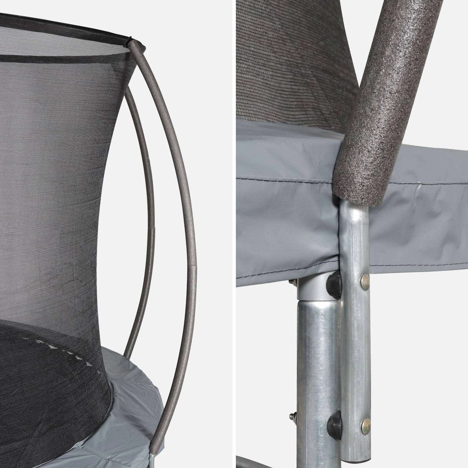 L’épaisseur des tubes joue un rôle primordial pour la solidité de la structure. Ceux de ce trampoline ont un diamètre de 38mm et une épaisseur de 1,35mm.